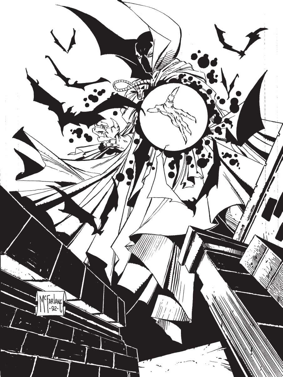 - Outra declaração, que serve até de inspiração para nós, é ao fato de que até aquele ponto da sua carreira, McFarlane já tinha aceitado que nem todas as suas páginas deveriam ter todas as linhas perfeitamente desenhadas. Com esta meta em mente ele conseguia manter os prazos mais facilmente;